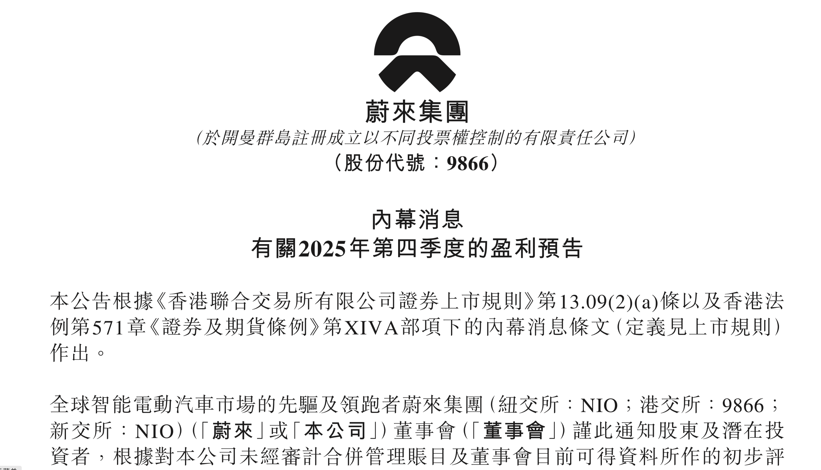近日,根据蔚来在港交所发布公告显示,公司预计2025年第四季度首次实现单季度经调整经营利润(非公认会计准则),盈利区间为人民币7亿元至12亿元,同比去年实现大幅扭亏为盈。同时,按公认会计准则计量,蔚来预计2025年第四季度经营利润为人民币2亿至7亿元(约0.29亿美元至1亿美元),同样实现盈利。